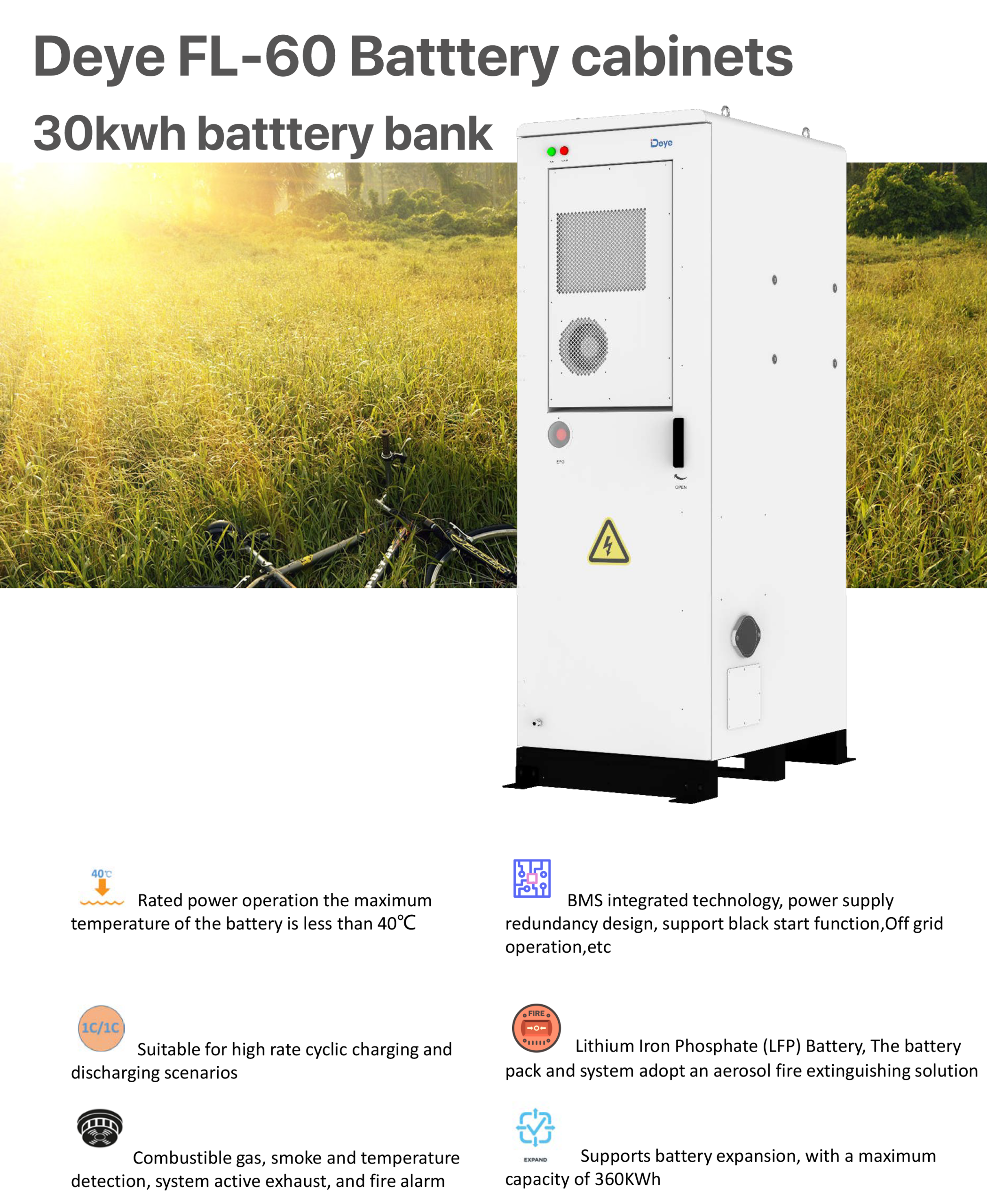 Deye FL-60 Batttery cabinets, 30kwh batttery bank with IP55 enclosure, cooling and fire supression system