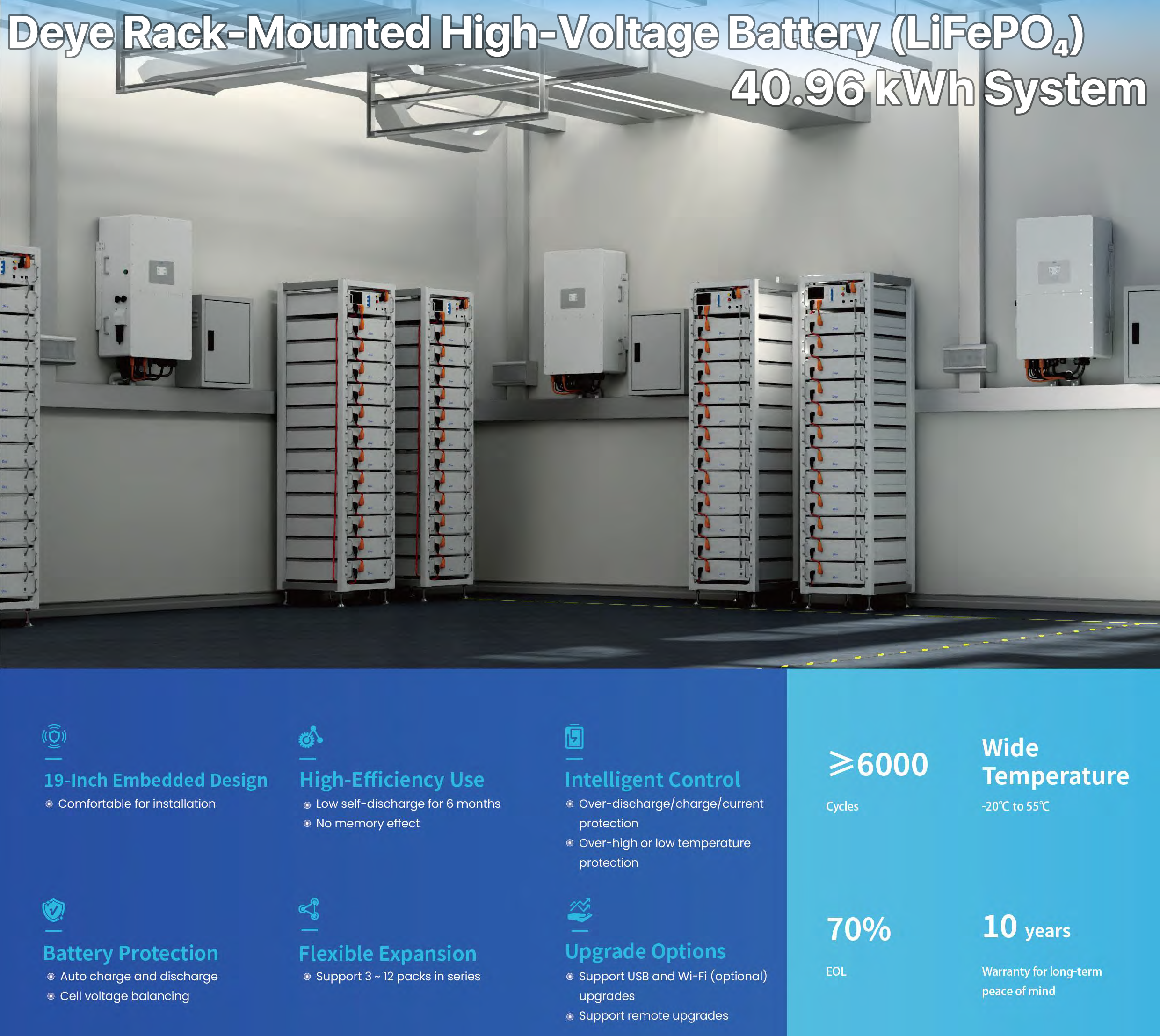Deye Rack-Mounted High-Voltage Battery (LiFePO₄) – 40.96kWh System