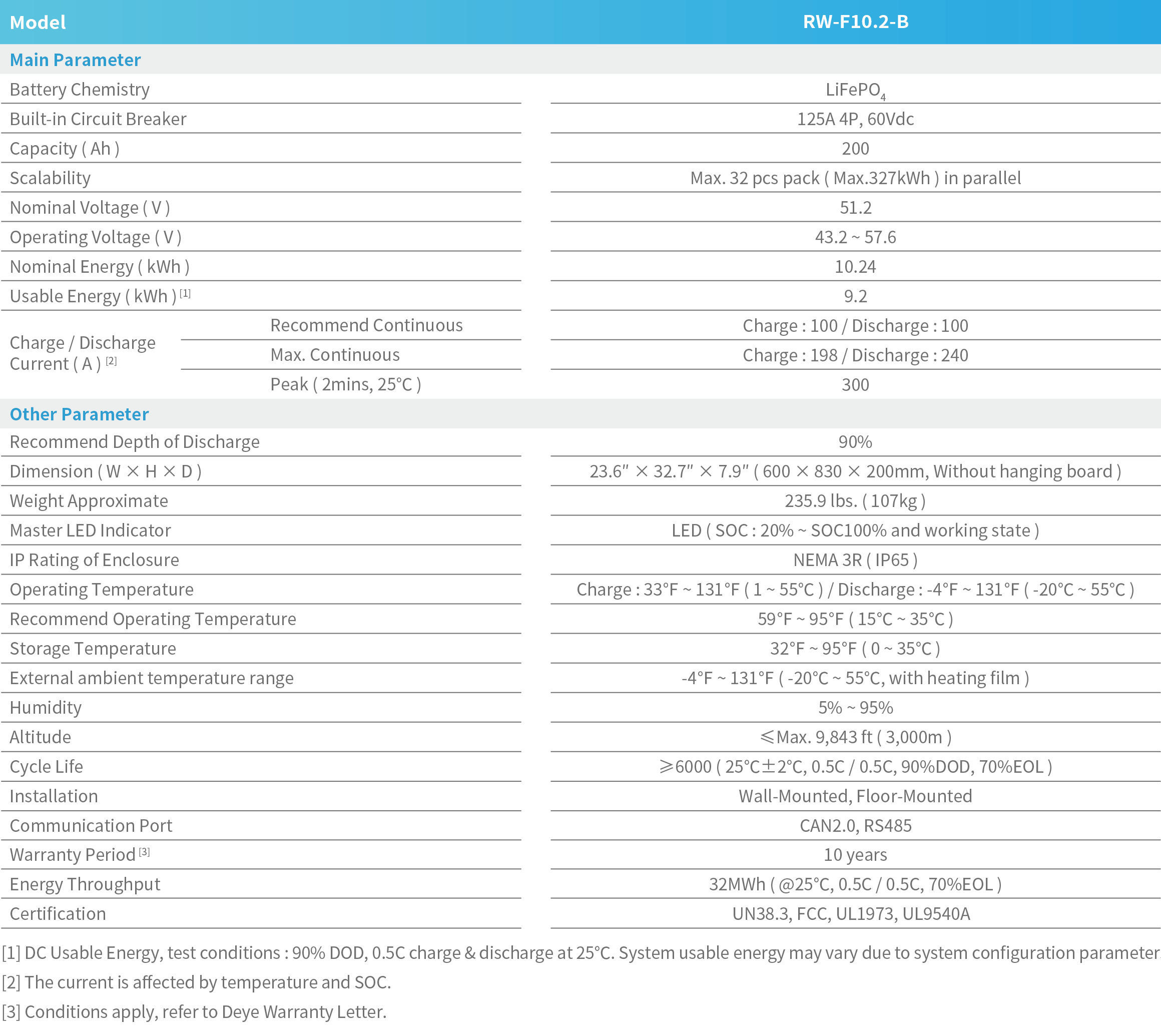 - High Performance – 10.24kWh capacity (9.2kWh usable), ≥6,000 cycles at 90% DoD, 32MWh lifetime energy throughput.