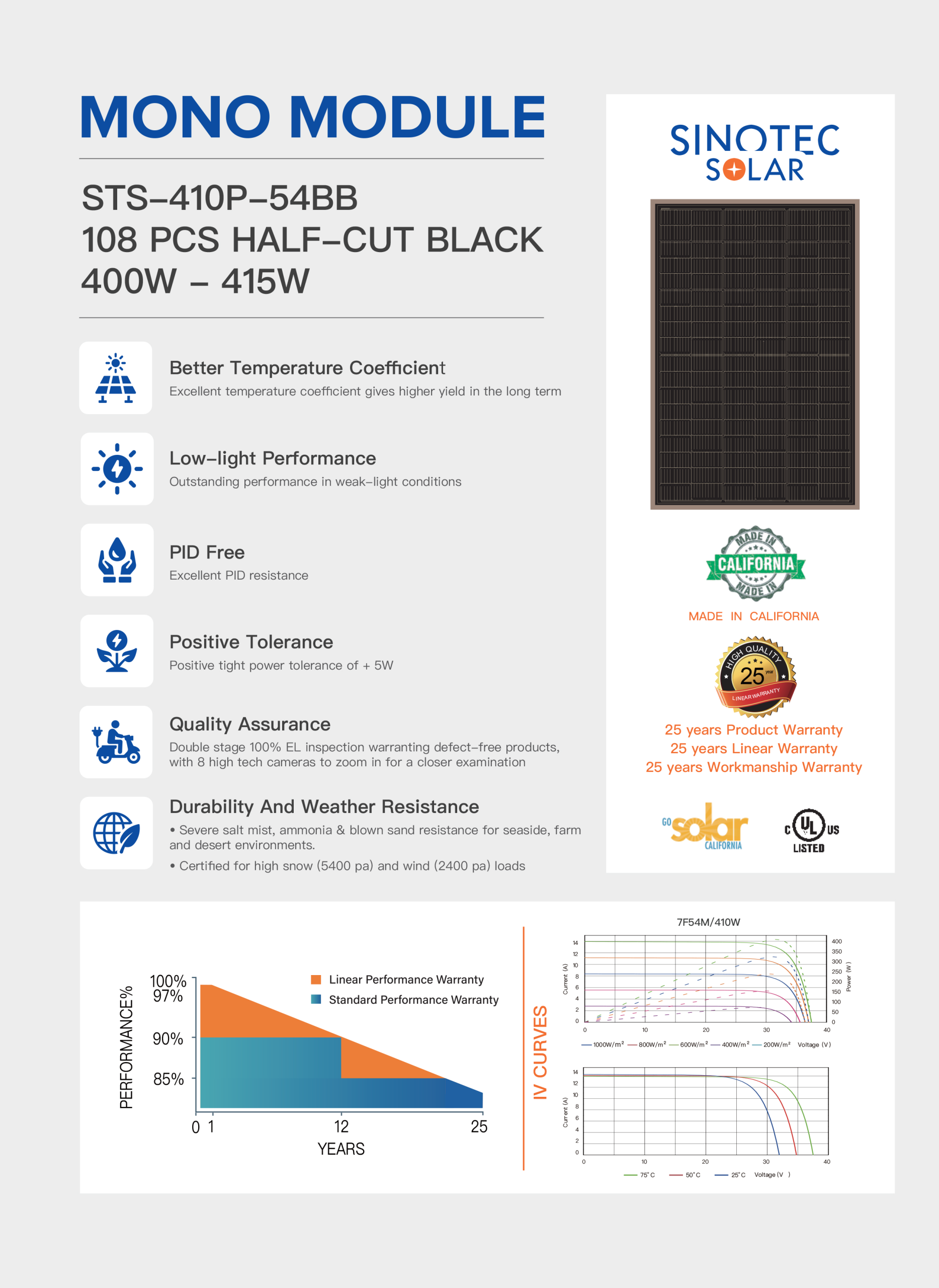 Sinotec 410W Half-Cell Bifacial, 25 years warranty