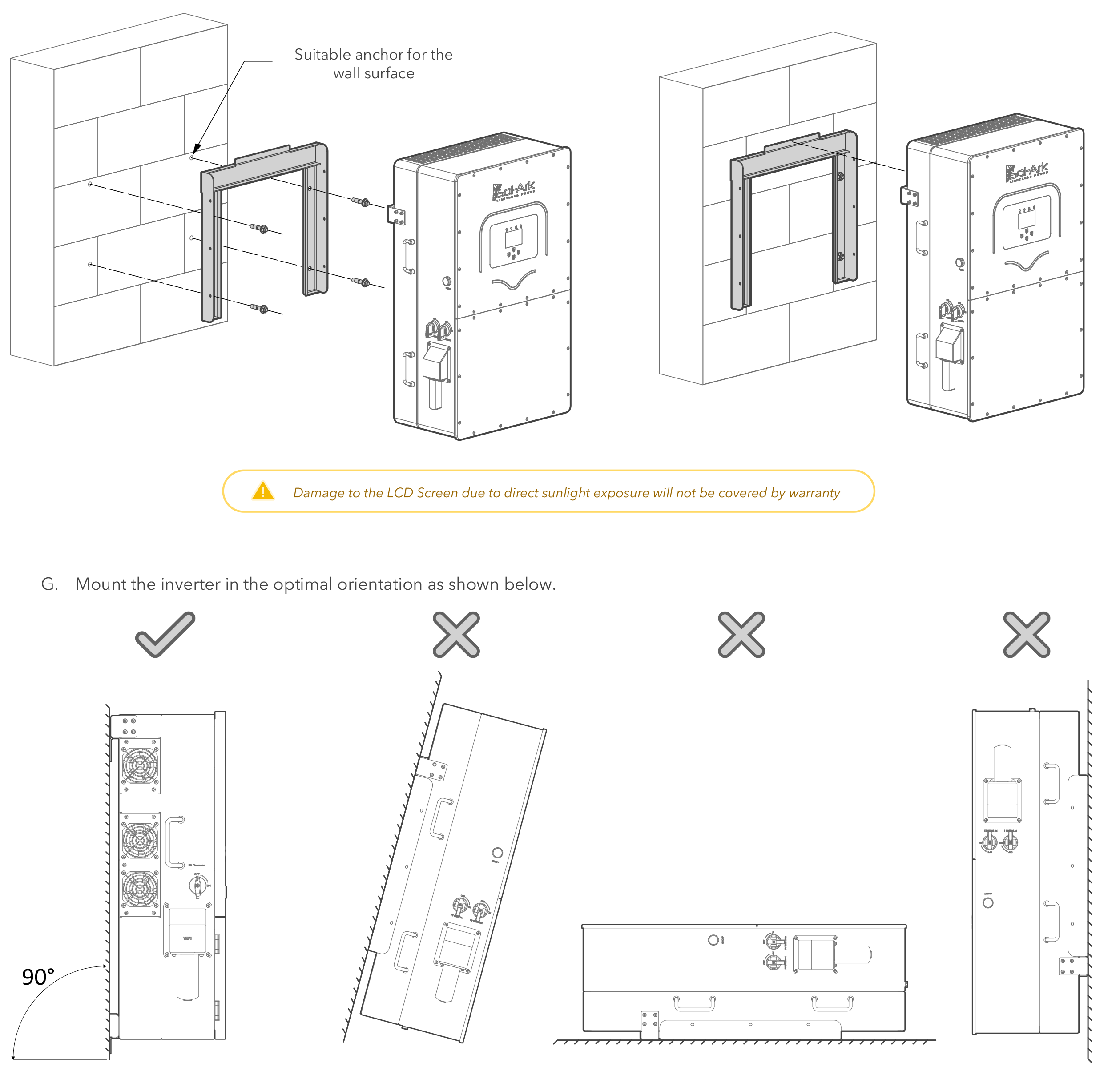 - Scalable Battery System: Compatible with 160–500V lithium iron phosphate batteries (50–9900Ah capacity), 100A max charge/discharge current via dual 50A inputs.