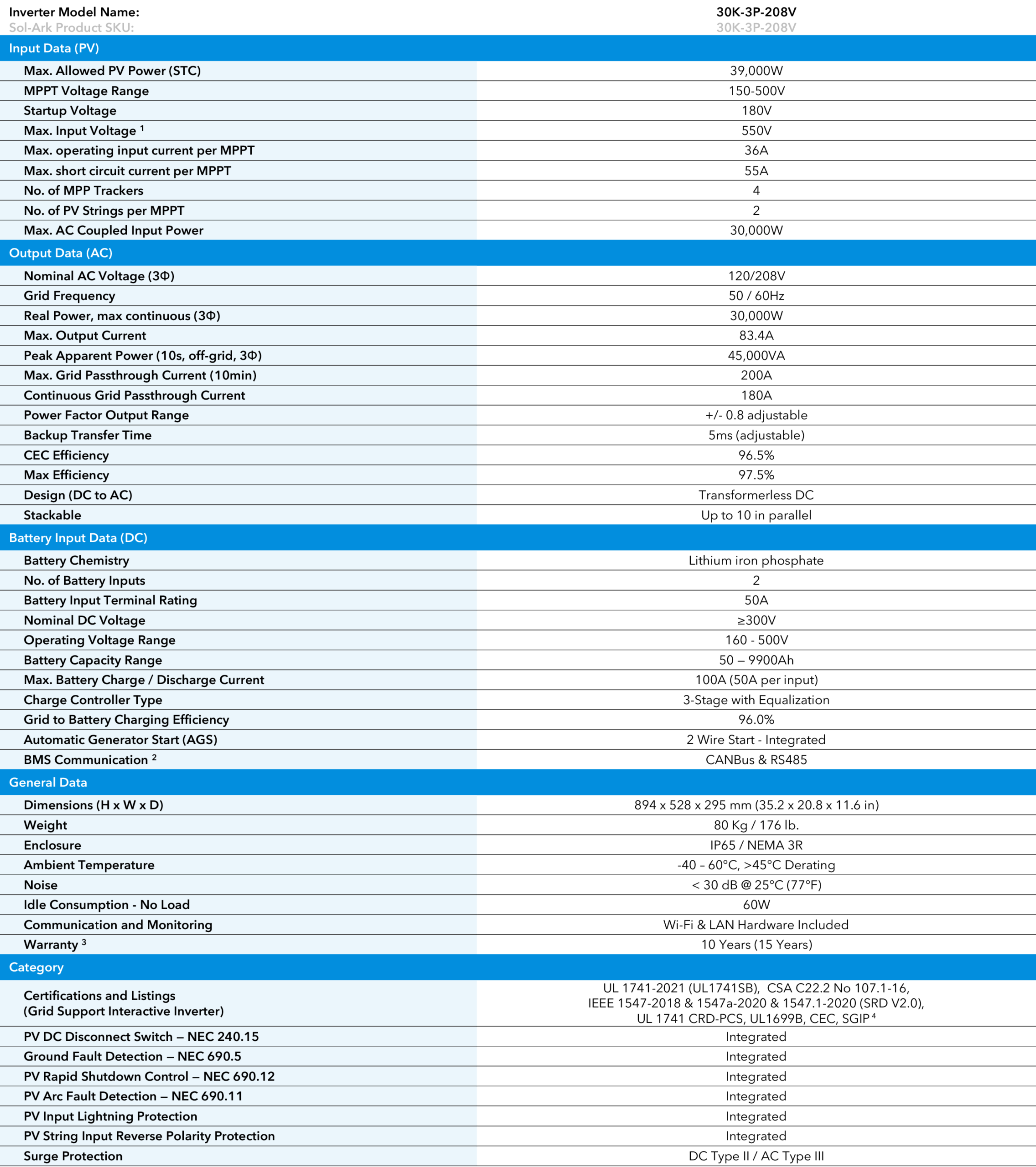 Sol-Ark 30K-3P-208V 30kwh C&I Hybrid Inverter