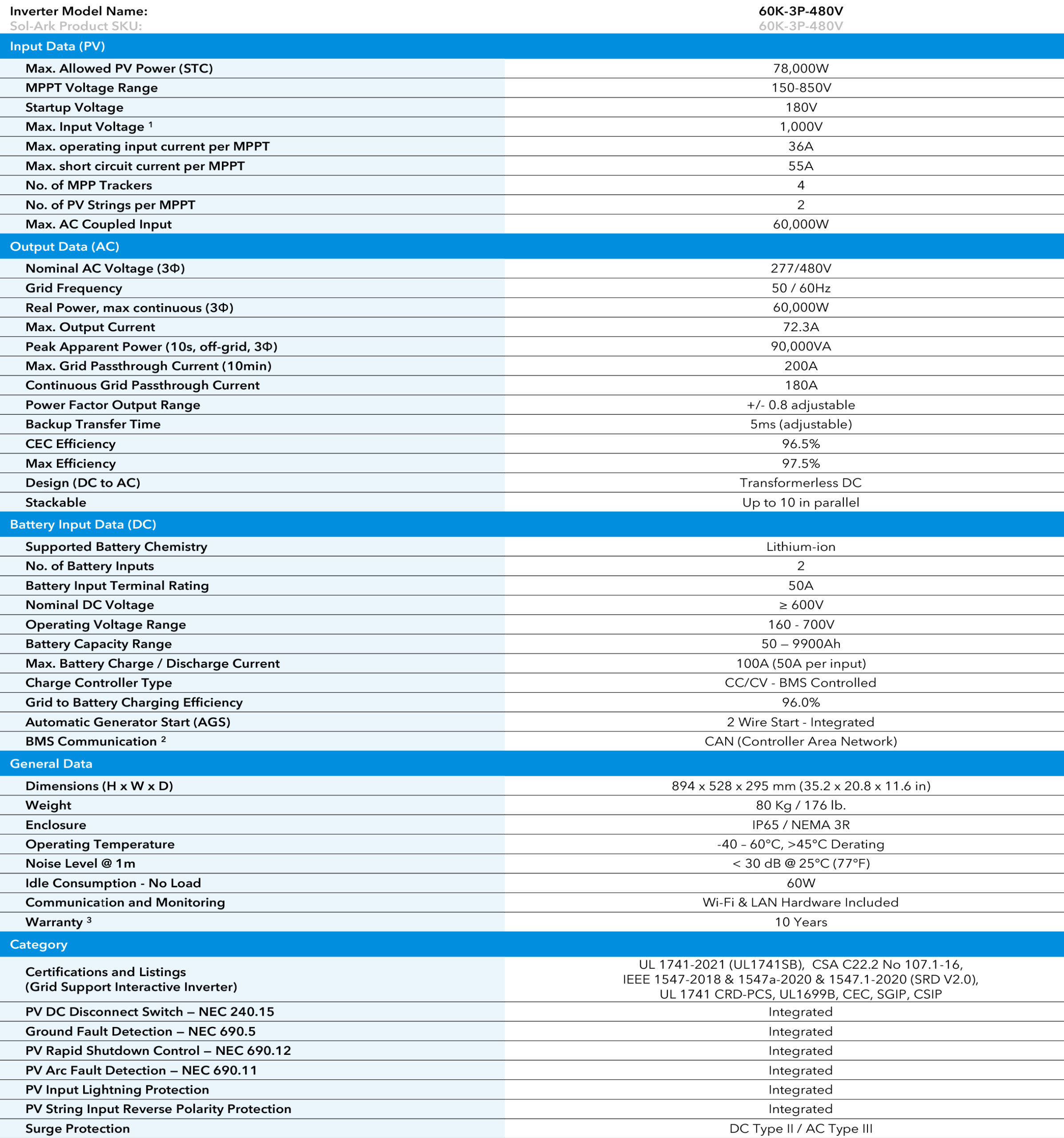 Sol-Ark 60K-480V C&I Hybrid Inverter