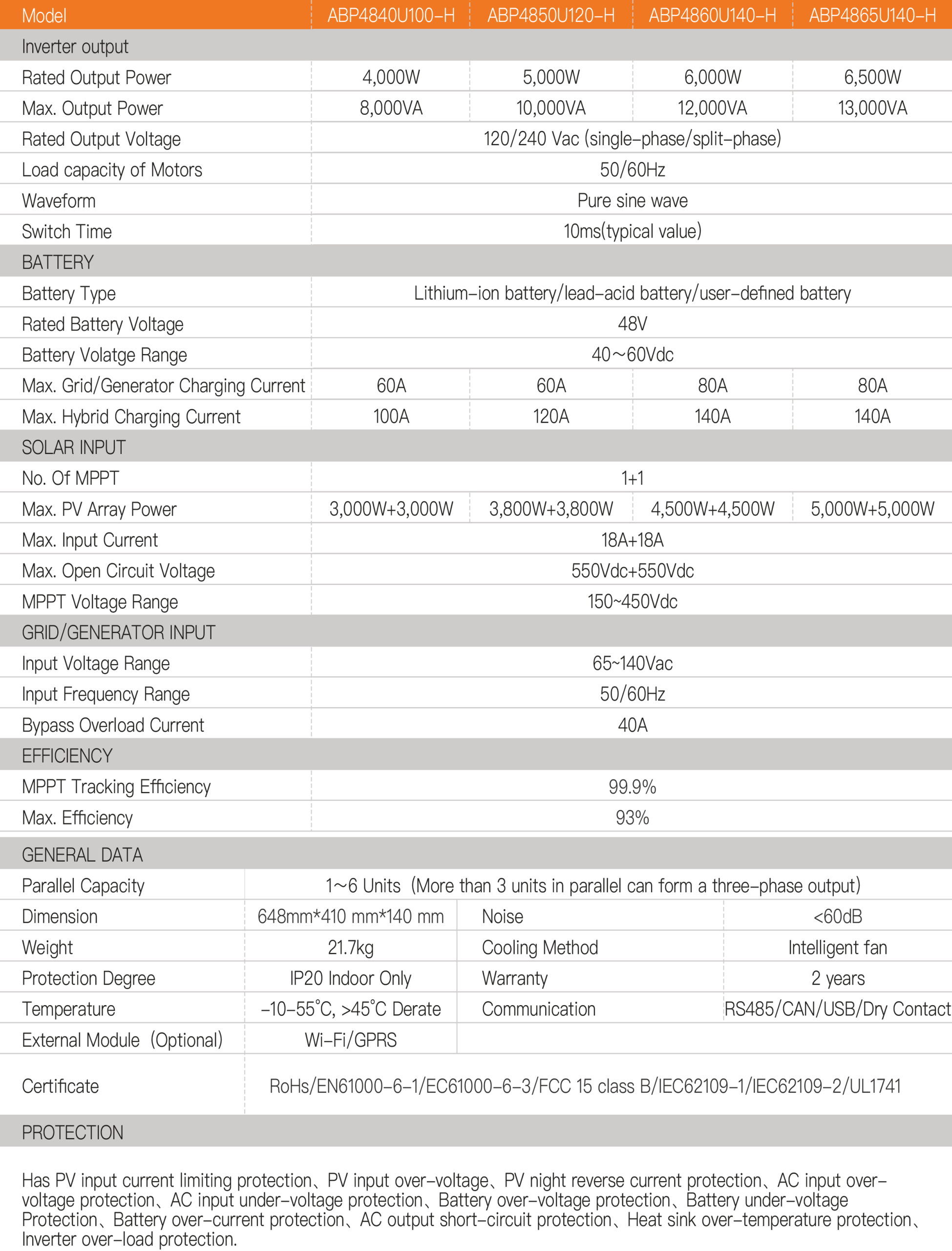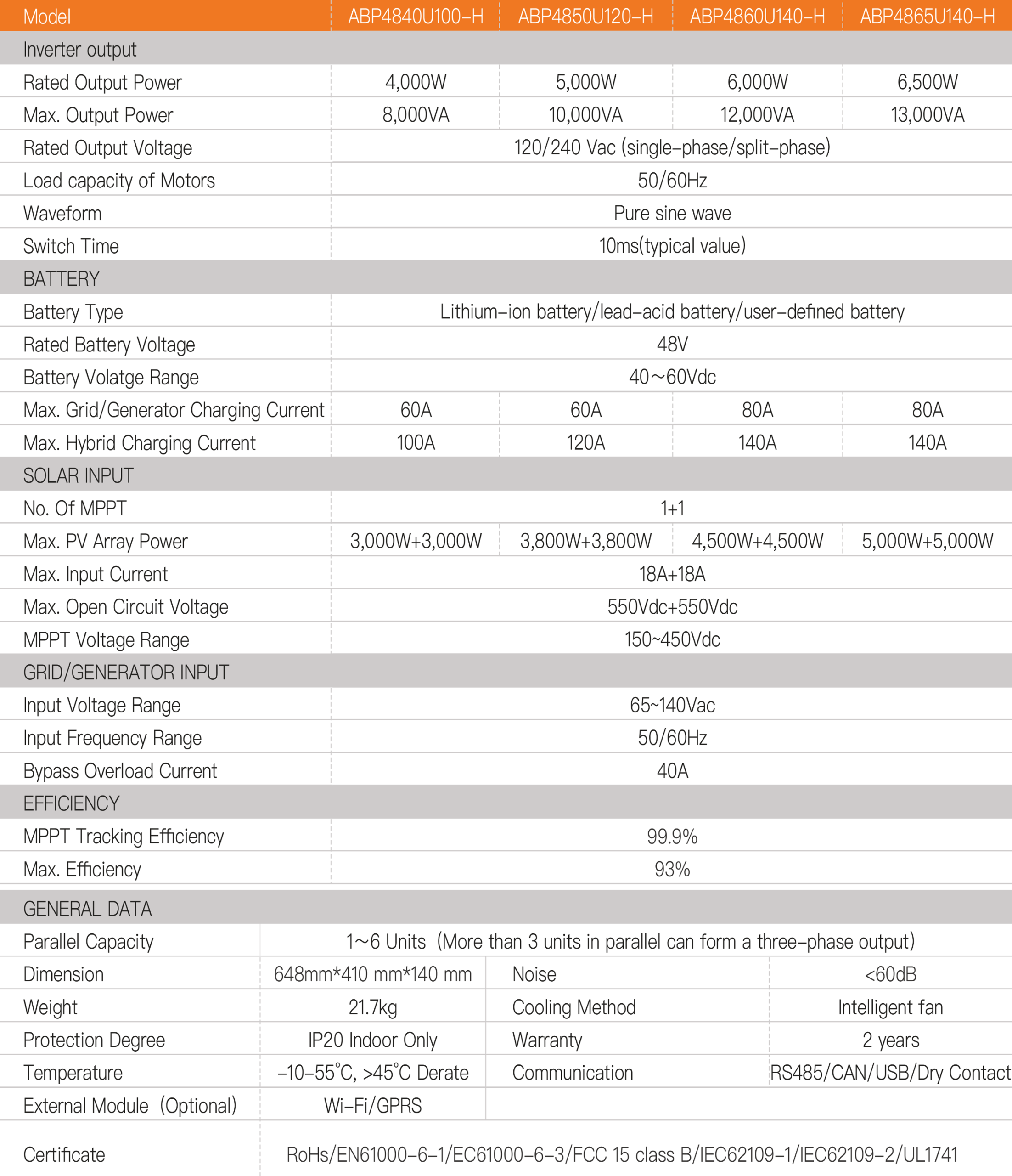 - Scalability: Up to 6 units in parallel (39kW), optional three-phase output with ≥3 units.